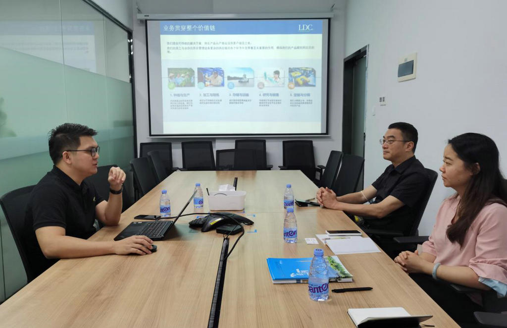路易达孚许泽坡公共事务经理热情接待了协会一行,并对我会的来访表示热烈欢迎,许泽坡介绍了路易达孚在中国的发展历程,作为一家成立于1851年的农产品贸易与加工企业,路易达孚近50年来扎根中国市场。路易达孚将通过持续投资加强核心业务,应用新技术,实现更高的产业效率和供应链可追溯性,并加快创新以实现食品的可持续发展,从而实现路易达孚在中国的转型战略。 每年,路易达孚在全球范围内种植、加工和运输约8000万吨农产品,为全球约5亿人提供衣食所需。路易达孚在全球拥有6个业务区域,涵盖8个业务平台,在世界100多个国家拥有1.7万余名员工。中国是路易达孚增长战略中的优先市场,路易达孚看到了满足中国消费者对高质量食品日益增长需求的无限机遇。