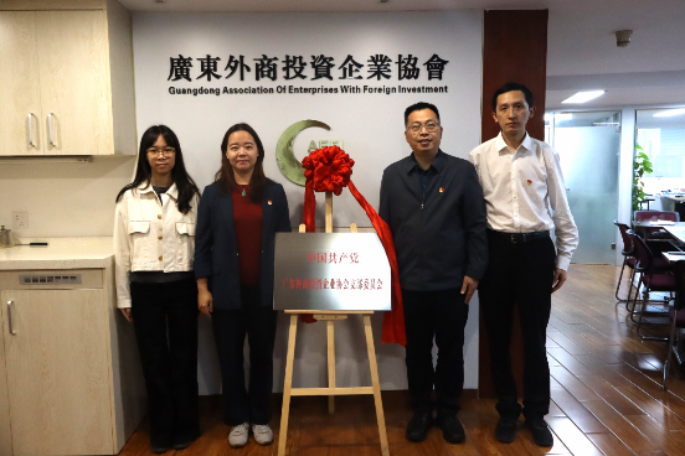 为深入贯彻落实行业商协会“两个覆盖”工作要求,进一步强化基层党组织建设,筑牢党建工作根基,经林和街道党工委批准,中国共产党广东外商投资企业协会支部委员会(以下简称:协会党支部)于近期正式成立。11月14日下午,广东省商务厅副厅长、协会会长朱小军与协会党支部书记唐穗卉共同为协会党支部揭牌。