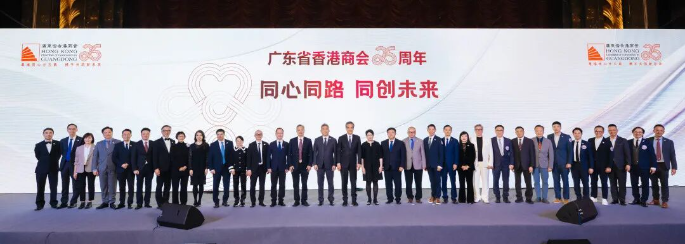 晚会正式开始前,来宾为香港大埔火灾遇难同胞致哀,同时为受影响的市民、消防员、救护员、警队及义工送上祝福,祈愿一切安好。随后播放25周年发展回顾视频,从九七回归开始,广东省香港商会一同经历的种种,无论顺境逆境,都坚持发挥狮子山精神,商会与粤港合作共融发展。视频结束后,一曲《狮子山下》悠然响起,这份精神从未褪色,这份迎难而上的坚毅与信念,凝聚及团结着全场来宾的心和力量。