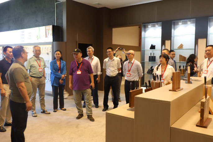 上午,考察团聚焦阳江市阳东区优势刀剪产业,先后参观广东金辉刀剪股份有限公司(以下简称:金辉)、阳江市美珑美利刀具有限公司(以下简称:美珑美利)、阳江十八子集团有限公司(以下简称:阳江十八子)。通过实地参观生产车间、交流企业运营模式,深入了解三家企业的发展特色:金辉刀剪探索“转营之路”,为百年老字号注入新活力;美珑美利深耕刀具领域,打造专业化产品矩阵;阳江十八子集团坚持技术创新,为刀剪产业提供核心材料支撑,构建产业链核心竞争力。